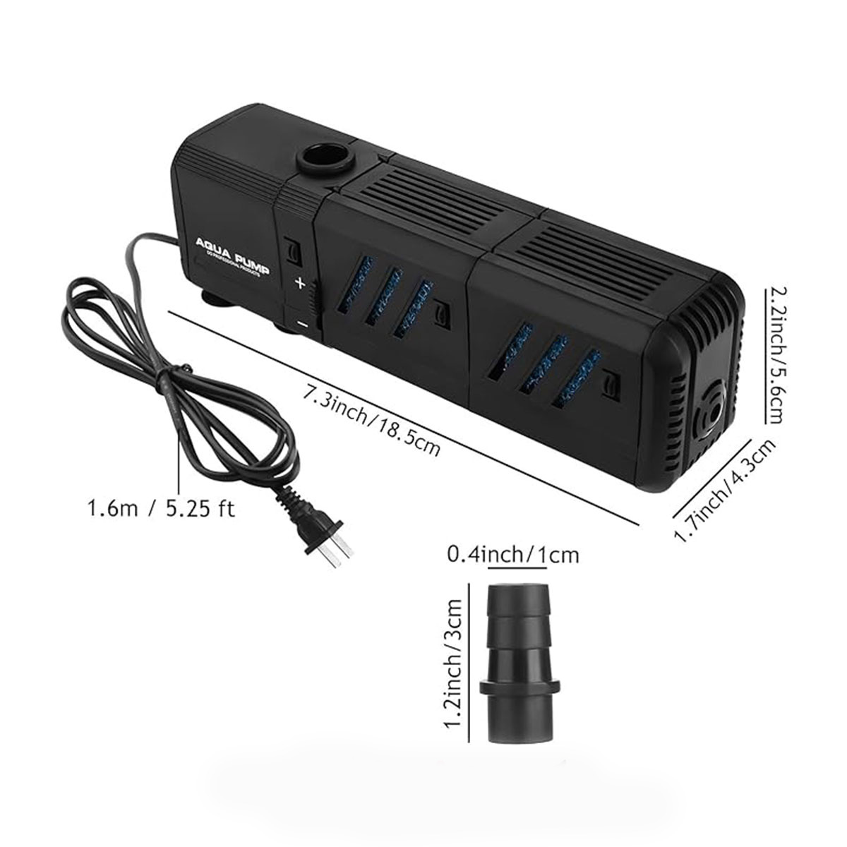 تنظیم جریان آب: مجهز به اسلایدر یا دکمه تنظیم (+ / -) برای کنترل میزان جریان خروجی آب، که آن را برای آکواریومهای با حجمهای مختلف یا ماهیهایی که جریان ملایم نیاز دارند، ایدهآل میسازد.