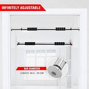 نصب آسان و سریع: بدون نیاز به ابزار، به راحتی میله را در چهارچوب درب قفل کنید. طراحی قابل تنظیم برای فیت شدن در اکثر چارچوبها.