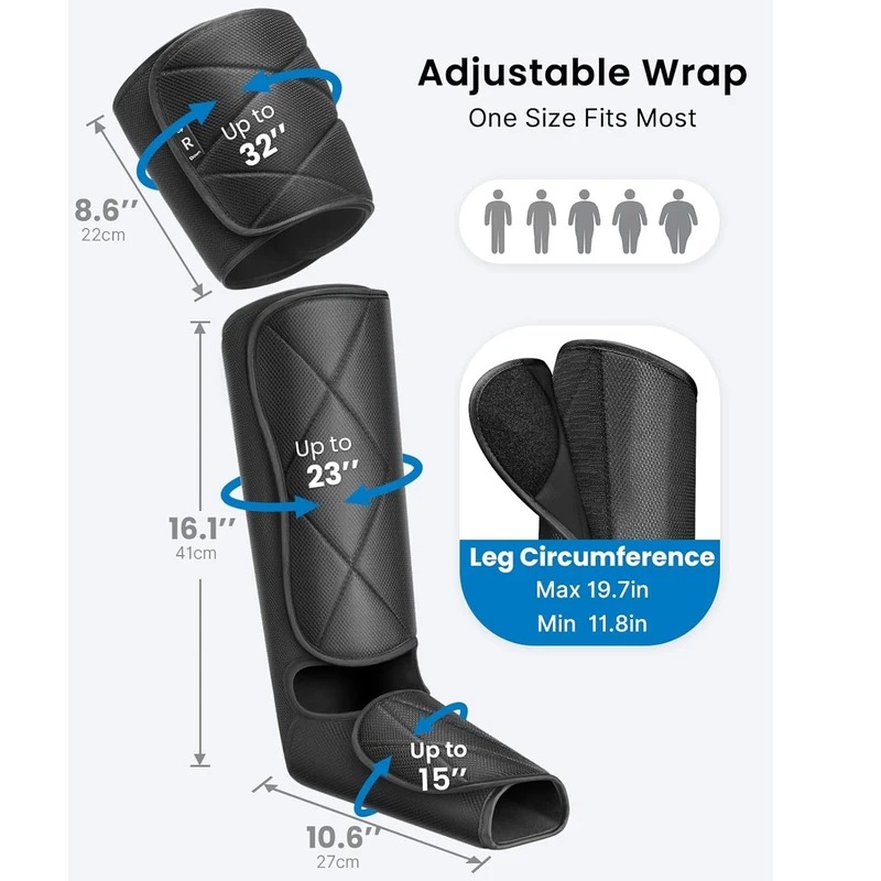 ماساژ فشاری (Air Compression): کیسههای هوای هوشمند، عضلات ساق پا و قوزک رو به صورت ریتمیک فشرده میکنند؛ درست مثل یک ماساژور حرفهای.