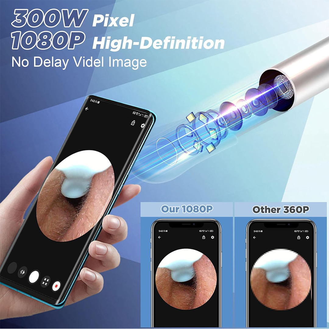 دارای دوربین HD با قابلیت اتصال به گوشی هوشمند از طریق WiFi؛ مشاهده داخل گوش بهصورت واضح و لحظهای روی صفحه موبایل.
