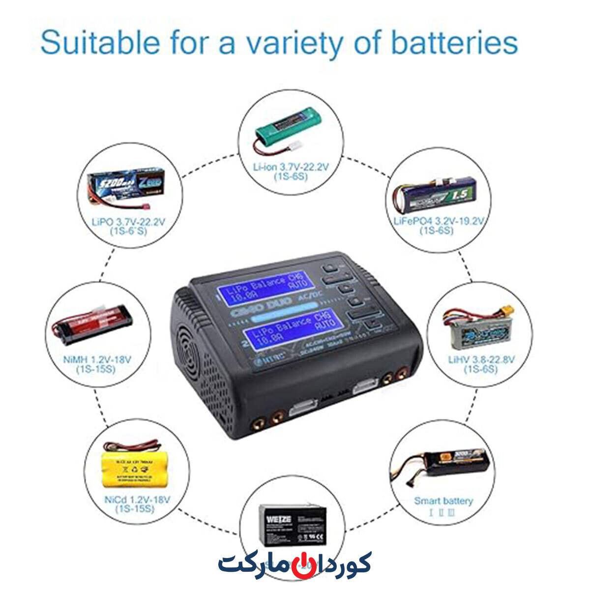 | برای باتریهای | LiPo/Li-ion/LiHV/LiFe/NiMH/NiCd/Pb |