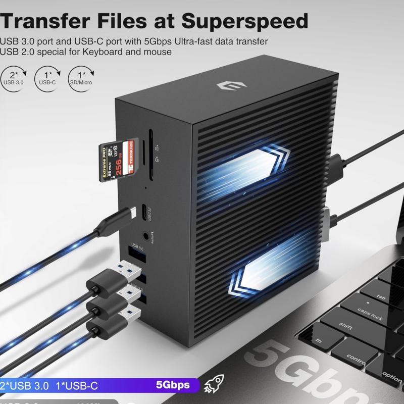 DC006B1 USB-C Dock: تمام ابزارهای مورد نیاز شما، فقط با یک کابل. میز کار خود را تمیز و قدرت لپتاپ خود را به حداکثر برسانید!