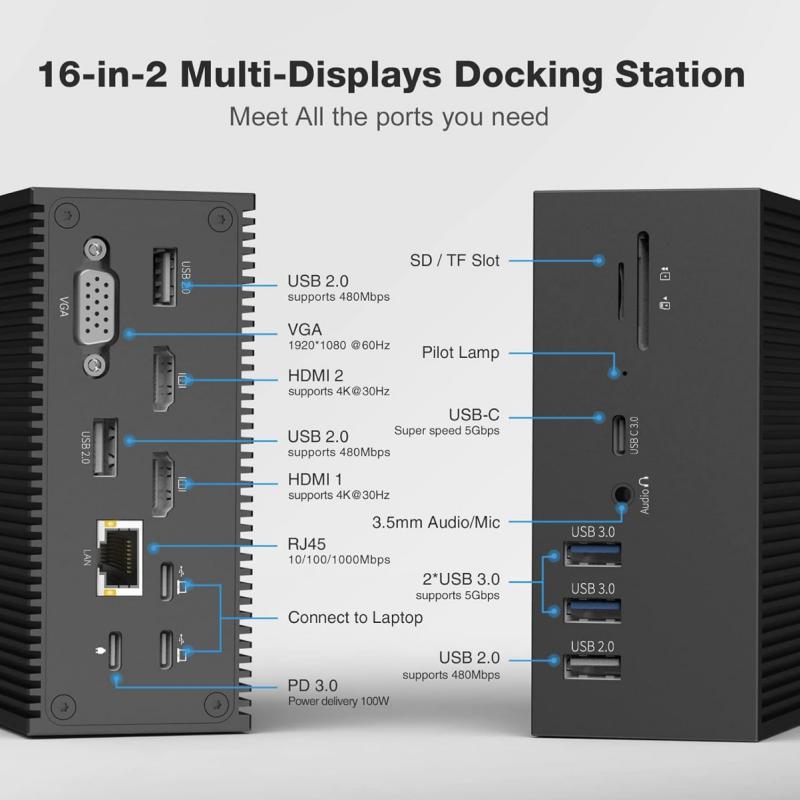 اتصالات کلاسیک و مدرن، همه در یک قاب: این داک با 16 پورت حیاتی، انعطافپذیری فوقالعادهای را ارائه میدهد، از جمله: